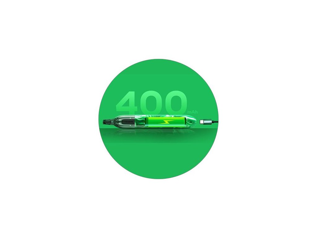 Uvnitř těla na vás čeká integrovaná baterie s příjemnou kapacitou 400mAh pro dlouhé hodiny nerušeného potahování. Výhodou zařízení Friobar Nano V2 je potom přítomnost moderního rozhraní USB-C pro snadné a rychlé dobití baterie naprosto kdekoliv. Přináší tak podstatnou výhodu proti běžným jednorázovým e-cigaretám.Praktické doplňování