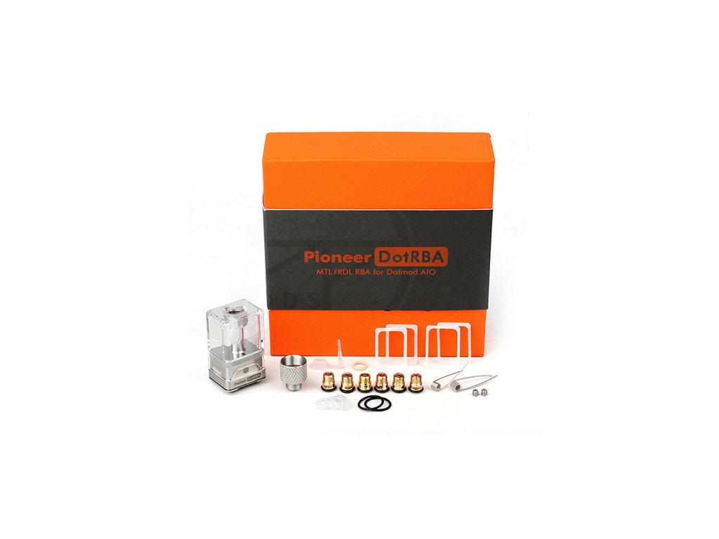 DotRBA nabízí jednoduchou základnu použitou i u oblíbeného Pioneer Insider s vedle sebe ležícími posty na jednu spirálku, která umožňuje pohodlné a snadné osazení. Tělo tanku je vyrobeno z nerezové oceli a PCTG. Nabízí kapacitu 2,5ml a příjemné plnění pomocí silikonové záslepky na přední straně. Nemusíte tak tank pro plnění vyjmout ze svého AIO zařízení.
