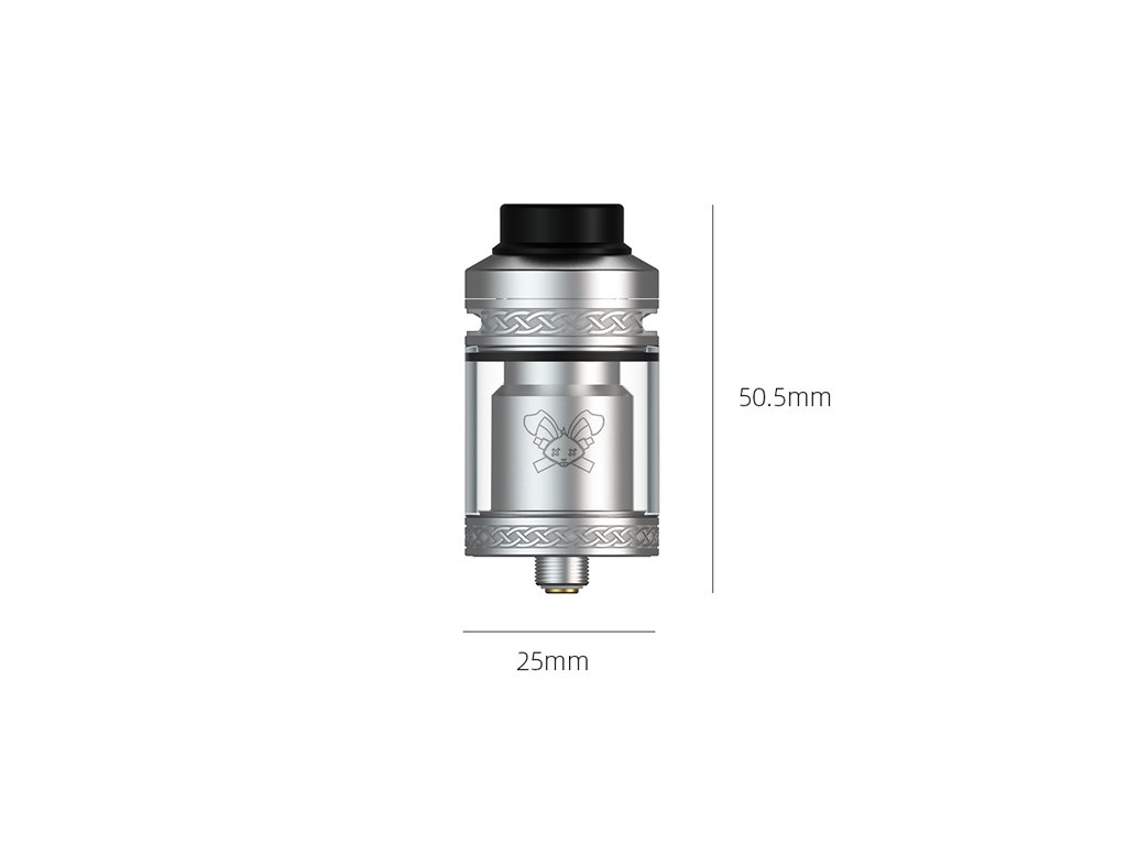 Vrchní přívod vzduchu ve tvaru včelí plástve byl navržen pro maximální chuť a minimalizuje možnosti protékání. Díky průměru 25mm a klasické základně ve tvaru králičích uší můžete osadit Dead Rabbit V2 RTA jak v režimu jedné tak i dvou spirálek. Výhoda základny spočívá v tom, že spirálky jednoduše umístíte vždy do stejné výšky a následně je zastřihnete.