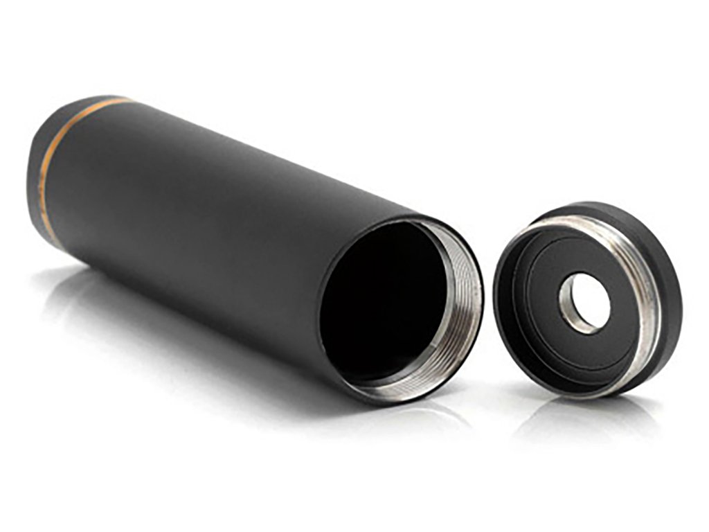 Jednoduchý a efektní design zdobí pozlacený kroužek a tlačítko, jehož hladký chod vás jednoznačně nadchne. Samotné tělo je vyrobeno z hliníku a obsahuje hybridní 510 závit. Je proto potřeba počítat s přímým kontaktem atomizéru a baterie. Veškeré kontakty jsou pokryty 24k zlatou vrstvou pro nejmenší ztráty.