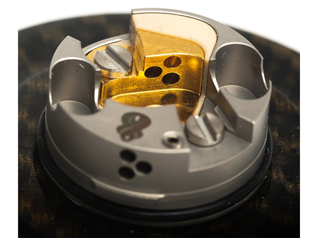 Klasická single coil základna umožňuje osazení jak jednoduchým buildem, tak i spirálkami typu clapton. Vrchní přívod vzduchu zaručuje perfektní zásobování e-liquidem a regulovatelné airflow umožňuje nastavení i utaženějšího potahu. Ideální průměr spirálek je 2,5mm-3mm.
