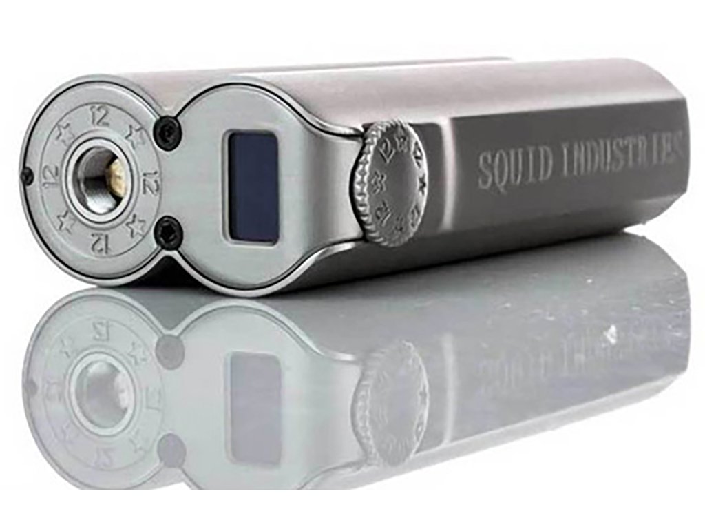 Již po prvním uchopení do ruky zjistíte, že se nejedná o typický zinkový a tedy lehký mod. Squid industries Double Barrel V2.1 je vyroben z kvalitní nerezové oceli, která mu propůjčuje nejen dlouhou životnost a vysokou odolnost, ale i vyšší hmotnost, která však není nijak extrémní. Čelní stěna je ozdobena nápisem Squid industries, nad kterým je umístěné centrální ovládací kolečko. To slouží jako volič výkonu a současně jako spínací tlačítko. Výkon lze nastavit v krocích po 1W v rozsahu 5 - 150W a kolečko s každým přidaným wattem “klikne“, takže změnu výkonu lze provádět prakticky po hmatu.