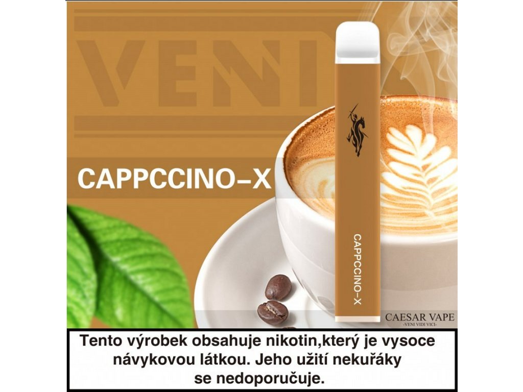 Jednorázová elektronická cigareta VeniX s příchutí cappuccina - CAPPCCINO. Až 700 potahů a příjemnou chutí. Užijte si perfektní vaping s naši elektronickou cigaretou VeniX.